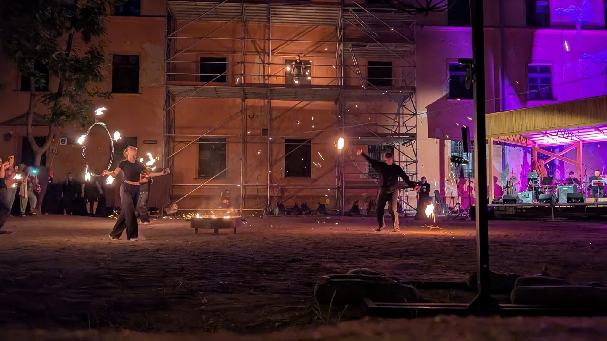 W dniach 8 i 23 czerwca odbyły się warsztaty tańca z ogniem i choreografii z animatorami – trenerami z poznańskiej grupy teatralnej – Zosią, Jakubem, Zuzią i Julią, zrealizowane w ramach zadania publicznego Samorządu Województwa Warmińsko-Mazurskiego. Grupy teatralne tworzące ognisko kulturalne Dzieci Ognia: Hoguera i Alma Fuego doskonaliły swoje umiejętności tańca z ogniem i współtworzyły układy choreograficzne, będące częścią przygotowywanego spektaklu teatralnego „Pan Bóg stworzył Świat …”.